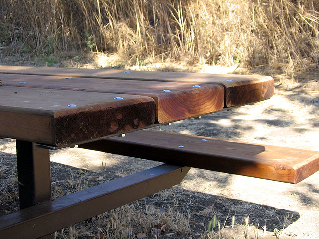 fixing warped ends of the picnic tables in the new equestrian area at