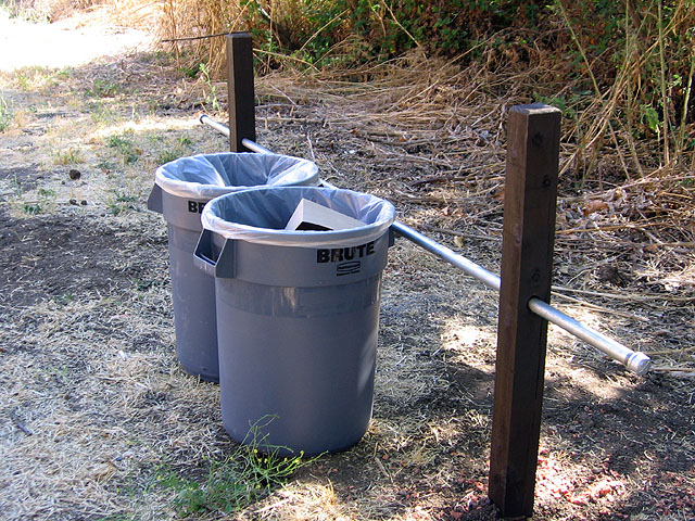 post, a garbage can corral, and