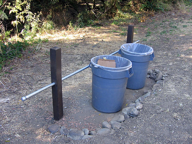 Garbage can corral in equestrian area.